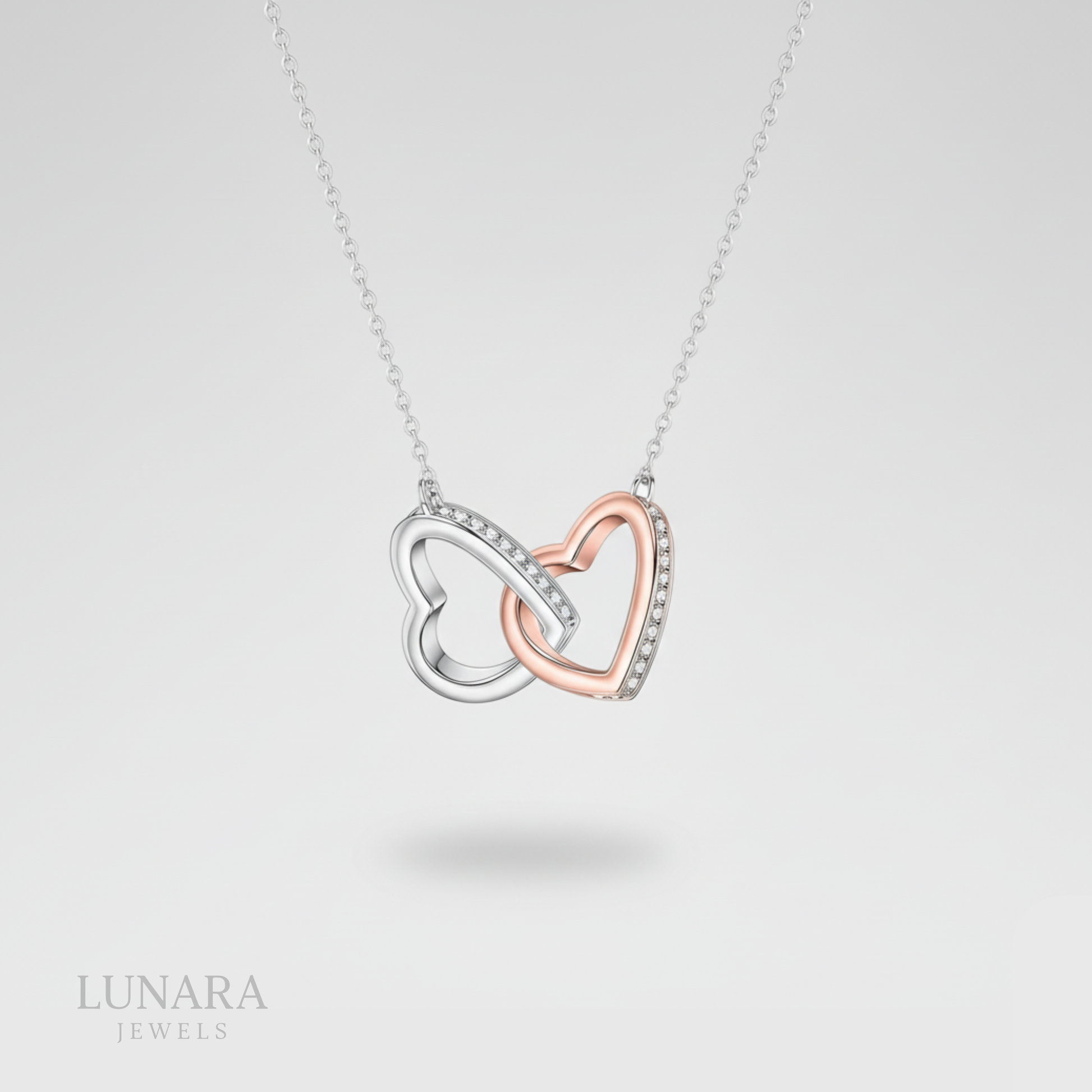 Collar de doble anillo de corazón bicolor │Lunara Jewels™️